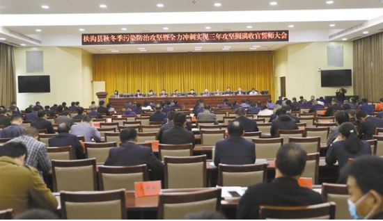 本報(bào)訊 (記者 李一) 10月22日,扶溝召開秋冬季污染防治攻堅(jiān)暨全力沖刺實(shí)現(xiàn)三年攻堅(jiān)圓滿收官誓師大會(如圖),分析形勢,聚焦短板,部署具體工作任務(wù),動員全縣上下扛牢責(zé)任、堅(jiān)定信心,以“亮劍”精神和不破樓蘭終不還的韌勁,堅(jiān)決打贏污染防治攻堅(jiān)戰(zhàn)??h領(lǐng)導(dǎo)張穎波、耿黨恩、姜永來、張建中、李明朗、王霄靈、趙紅亮、曹來凌、任松奎、張禹等出席會議??h委各部委辦常務(wù)副職、縣直各單位主要負(fù)責(zé)人、各鄉(xiāng)鎮(zhèn)(辦)黨政正職參加會議。