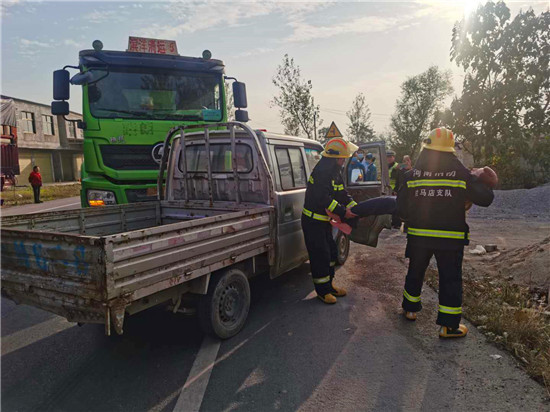 周口市商水縣公安局交警大隊(duì)為提高民警處置國(guó)、省道市縣結(jié)合部路段道路交通事故應(yīng)急救援能力,第一時(shí)間救助受傷人員,最大限度將交通事故造成的人員傷亡、財(cái)產(chǎn)損失、環(huán)境污染等危害后果降低到最小限度。10月26日下午3時(shí),在周口市交警支隊(duì)事故科王領(lǐng)科長(zhǎng)的協(xié)調(diào)指揮下,商水縣公安局交警大隊(duì)聯(lián)合駐馬店市上蔡縣公安局交警大隊(duì),在223省道(原219省道)商水縣與上蔡縣交界處的上蔡縣華陂鎮(zhèn)賴(lài)莊路段,模擬大貨車(chē)與微型貨車(chē)發(fā)生事故現(xiàn)場(chǎng),演練省道市際突發(fā)道路交通事故應(yīng)急救援行動(dòng)。