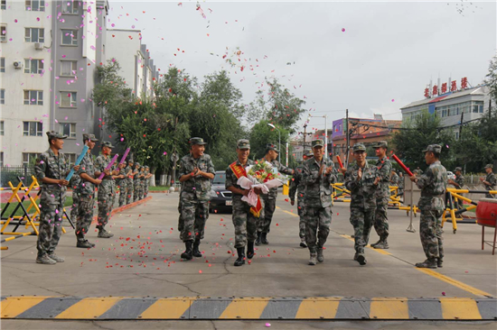 每周考核在所選兩個(gè)科目中始終拔得頭籌,他覺得這次一定會(huì)在比武中取得名次,但天公不作美,臨近比武的幾天,天降大雪,比武取消,聽到這個(gè)消息,張潔心情很失落,覺得又一次證明自己的機(jī)會(huì)消失了,恰逢中士滿服役期, 在這個(gè)人生十字路口上,他想了很多也有過彷徨, 經(jīng)過激烈的思想斗爭,張潔覺得在軍旅生涯中自己雖然非常努力,但仍有很多遺憾,于是他申請(qǐng)留隊(duì)再拼搏,不能給自己的軍旅生涯留下遺憾。