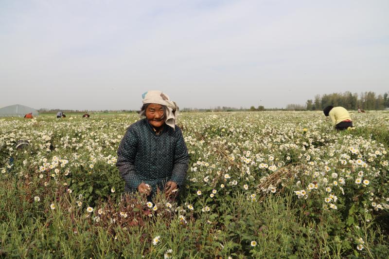 “像這樣含苞待放的胎菊,都被收作為花茶加工銷售;這些怒放的花朵有的作為藥材送往亳州,有的被精選送到王老吉廠家作為茶原料。說不定,你喝過的王老吉就是俺這塊田里的菊花味兒呢?!睍x振中笑著說。