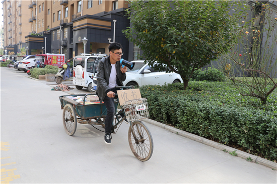 行駛30多分鐘后,劉啟昌來到太康縣城鑫港灣小區(qū),打開喇叭開關(guān),吆喝了起來:“誰家賣書,誰家有多余的書籍賣……”聽到吆喝聲,居民崔海英從家里抱出來一摞書。“全是作文書,學(xué)生看了對(duì)寫作有好處。”崔海英把書遞給劉啟昌說。