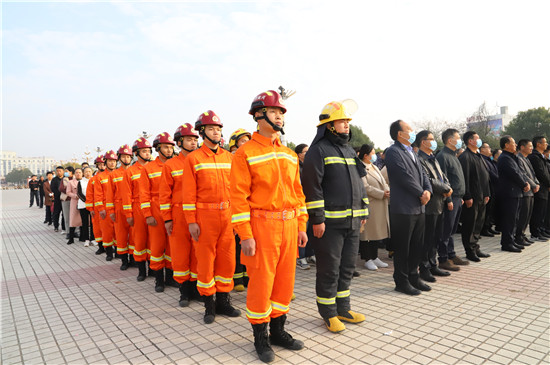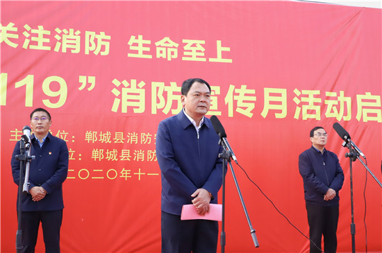 11月11日,鄲城縣在世紀廣場舉行2020年消防宣傳月活動啟動儀式,目的是進一步提高全民消防安全意識,促使“關(guān)注消防 生命至上”的主題深入人心,廣泛發(fā)動社會各界關(guān)注消防、參與消防,營造良好的宣傳氛圍,預(yù)防和減少火災(zāi)事故發(fā)生,確保人民群眾生命財產(chǎn)安全。縣長李全林出席會議并宣布消防宣傳月活動啟動,縣委常委、常務(wù)副縣長胡友濤主持會議,縣領(lǐng)導(dǎo)謝超、王彪、陳鳳祥、李素梅及縣公安局政委趙紅建參加會議。