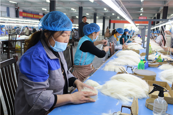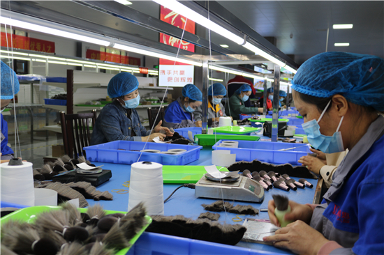 “從簡單的梳羊毛到如今做高檔化妝刷,從產(chǎn)業(yè)鏈的末端做到頂端,從養(yǎng)家糊口到賺外匯,經(jīng)過多年的滾動發(fā)展,鹿邑縣硬是把尾毛化妝刷這種‘小手藝’做成了助推縣域經(jīng)濟高質(zhì)量發(fā)展的‘大產(chǎn)業(yè)’。目前,全縣大大小小的化妝刷企業(yè)達1000多家,尾毛出口總量占全國化妝刷原毛出口的80%,年產(chǎn)羊毛3000多噸、尼龍毛9000多噸,生產(chǎn)各類化妝刷1.5億套,產(chǎn)品遠銷20多個國家和地區(qū)。另外,作為尾毛的衍生產(chǎn)業(yè),羊毛衫加工產(chǎn)業(yè)近幾年的異軍突起,更是激活了全縣創(chuàng)業(yè)就業(yè)的一池春水。統(tǒng)計數(shù)字顯示,近幾年,鹿邑縣持續(xù)圍繞尾毛化妝刷特色產(chǎn)業(yè),強鏈延鏈補鏈,開展精準(zhǔn)招商,化妝刷及配套企業(yè)已發(fā)展到135家,實現(xiàn)產(chǎn)值50多億元,出口創(chuàng)匯21億;羊毛衫紡織企業(yè)發(fā)展到54家,有電腦織機6500臺,年產(chǎn)各類針織服裝6000萬件,使鹿邑成為河南省最大的化妝刷生產(chǎn)基地、羊毛衫加工基地,帶動全縣7.5萬人創(chuàng)業(yè)就業(yè)。