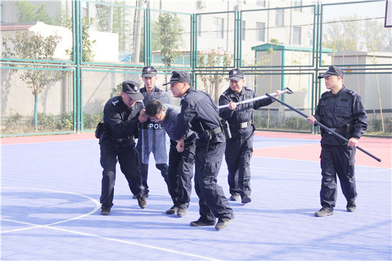 在法警大隊(duì)訓(xùn)練場(chǎng),考核組一行觀看了擒敵拳和警械具使用、處置突發(fā)事件等實(shí)戰(zhàn)應(yīng)用。在處突演練過程中,5人組成的處突小組模擬各種突發(fā)情況進(jìn)行實(shí)戰(zhàn)演練,法警們反應(yīng)迅速,執(zhí)法規(guī)范,短短數(shù)秒內(nèi)就將"暴徒"制服。