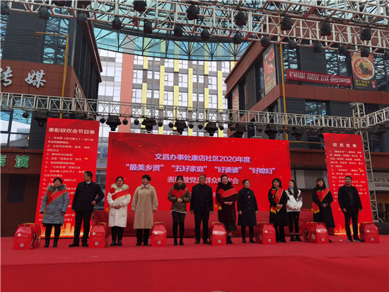 為大力弘揚(yáng)中華民族傳統(tǒng)美德,深入挖掘康店社區(qū)尊老敬孝、勤儉持家的先進(jìn)典型,積極引導(dǎo)廣大居民群眾移風(fēng)易俗、孝老愛親,促進(jìn)家庭和睦、社會(huì)和諧,11月27日,城鄉(xiāng)一體化示范區(qū)文昌辦事處康店社區(qū)舉行“最美鄉(xiāng)賢”“好婆婆”“好媳婦”“五好家庭”表彰大會(huì)暨文藝演出活動(dòng)。據(jù)悉,經(jīng)社區(qū)村民推薦,康店社區(qū)評選出的14位“最美鄉(xiāng)賢”、7戶“五好家庭”、5位“好婆婆”、7位“好媳婦”現(xiàn)場接收表彰。