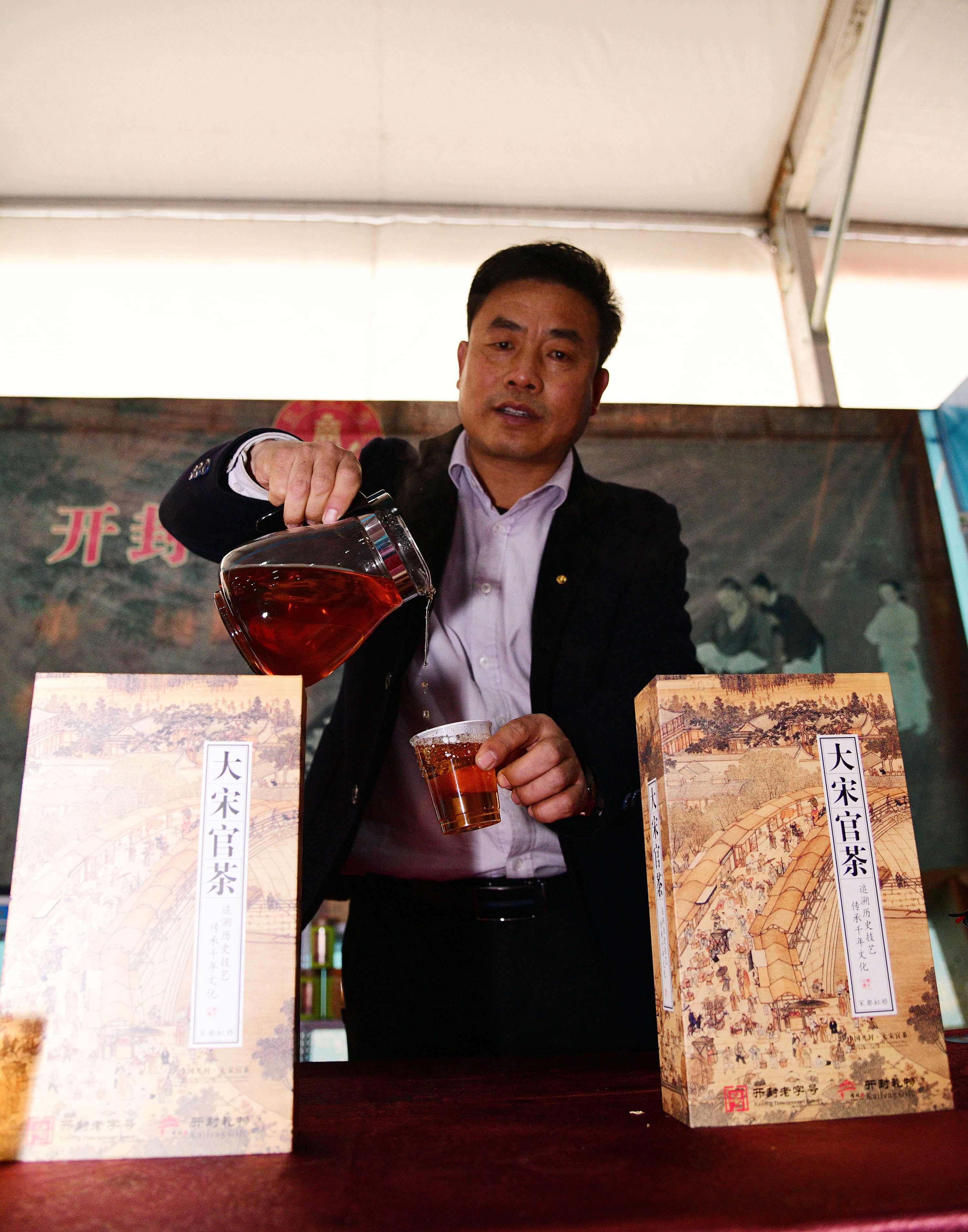 在展會(huì)上給顧客講述大宋官瓷品相的董俊,也是很厲害的周口企業(yè)家,能夠把開(kāi)封老字號(hào)的官瓷,運(yùn)營(yíng)得風(fēng)生水起,大宋官瓷瓷器和汴繡被譽(yù)為七朝古都象征性的物產(chǎn),還有大宋官茶,含有被譽(yù)為茶中黃金的“金花菌”,是“河南老字號(hào)”、“非物質(zhì)文化遺產(chǎn)”,也被選入“首屆開(kāi)封禮物”。大宋官茶源于宋神宗(公元1068年),它今天的主人是淮陽(yáng)區(qū)新站籍企業(yè)家牛華麗,這位淮陽(yáng)籍漢子從小在開(kāi)封長(zhǎng)大,對(duì)大宋官茶獨(dú)有情種,現(xiàn)在是大宋官茶掌舵人,是大宋官茶非遺傳承人。而福興齋桶子雞老總馬勇是沈丘人,這是開(kāi)封的名吃,去開(kāi)封旅游,吃桶子雞和小籠包,成為游客必須品嘗的美味。馬勇參加周商大會(huì)帶回周口的桶子雞深受家鄉(xiāng)人的喜歡,一直熱賣(mài)。而“鞋品”鞋的老總侯建峰是鄲城人,他在廣州設(shè)有代加工廠,鞋子以河南為主要市場(chǎng),在開(kāi)封城由五個(gè)專賣(mài)店,同時(shí)也銷往全國(guó)。