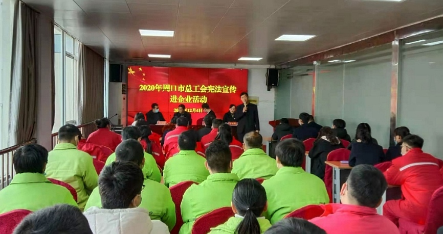 在第七個(gè)國(guó)家憲法日宣傳活動(dòng)期間,周口市總工會(huì)根據(jù)市依法治市辦公室和省總工會(huì)普法辦工作要求,組織多種形式的憲法進(jìn)企業(yè)、進(jìn)廣場(chǎng)、網(wǎng)上憲法知識(shí)競(jìng)答等學(xué)習(xí)宣傳活動(dòng)。活動(dòng)期間,全市工會(huì)組織參加38人次,其中工會(huì)律師志愿者10人次,發(fā)放資料2000多份,設(shè)立展板30多塊、咨詢臺(tái)9個(gè),服務(wù)群眾1000多人次。