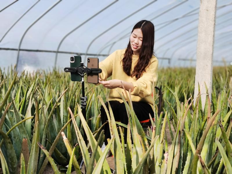 12月7日,川匯區(qū) 華耀城辦事處葛灣村孫立偉的蘆薈大棚里在進(jìn)行直播賣貨。周口市川匯區(qū) 華耀城辦事處葛灣村發(fā)展種植大棚蘆薈,成為當(dāng)?shù)氐奶厣?jīng)濟產(chǎn)業(yè),并成立集體經(jīng)濟組織合作社,全村統(tǒng)一規(guī)劃,結(jié)合市場需求規(guī)律,由合作社與企業(yè)簽訂訂單或通過電商平臺進(jìn)行網(wǎng)絡(luò)銷售。①15