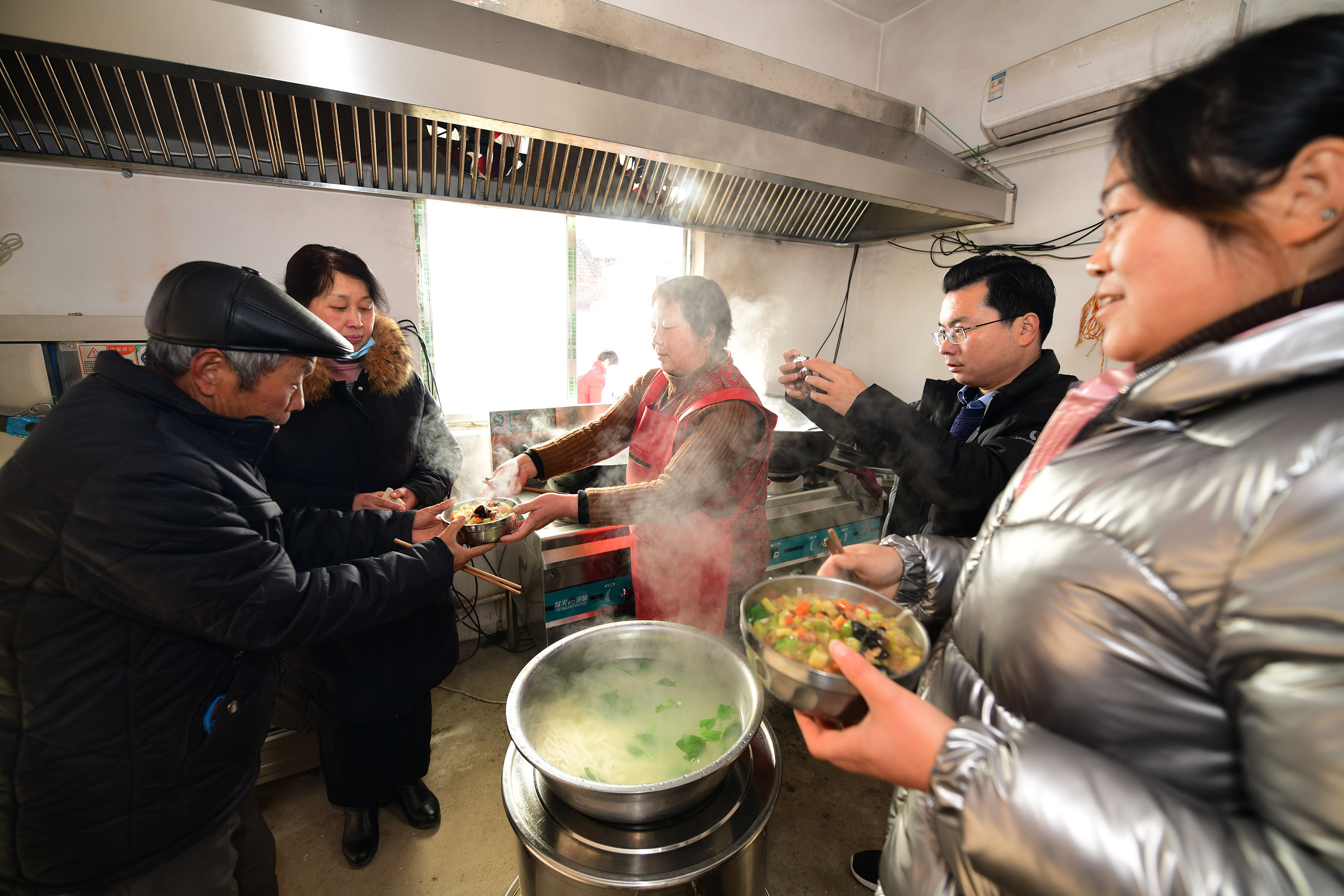 “開飯嘍!”隨著一聲喊,十幾位老人走進(jìn)炊煙裊裊、菜飯飄香的小院,拿著碗和積分卡,排隊(duì)打飯。這是12月15日中午,記者在西華縣奉母鎮(zhèn)七里倉二村看到村食堂開飯的場景。老人每人一碗臊子面,吃得渾身熱乎乎的。這一勺飯,讓這里的老人長壽幸福,從此不再怕風(fēng)雨不再畏嚴(yán)寒。這一勺飯,是七里倉二村今年實(shí)施土地治理后的村集體公糧,也是實(shí)施土地承包制40年來村集體里的首份余糧。
