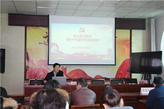 “黨的十九屆五中全會是在我國將進(jìn)入新發(fā)展階段、實現(xiàn)中華民族偉大復(fù)興正處于關(guān)鍵時期召開的一次具有全局性、歷史性意義的會議?!?2月19日,扶溝縣審計局召開學(xué)習(xí)貫徹十九屆五中全會精神宣講大會,由局黨組書記翟連生作宣講報告,該局全體干部職工共40余人參加了宣講會。