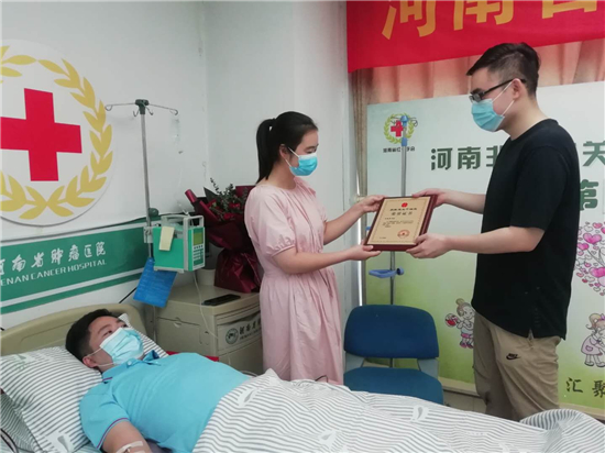 “王俊男先生,感謝您成為一名光榮的造血干細(xì)胞捐獻(xiàn)者,您的偉大善舉將使血液病患者獲得新生?!痹诤幽霞t十字會(huì)為王俊男頒發(fā)的榮譽(yù)證書(shū)上,給予了他最崇高的敬意。