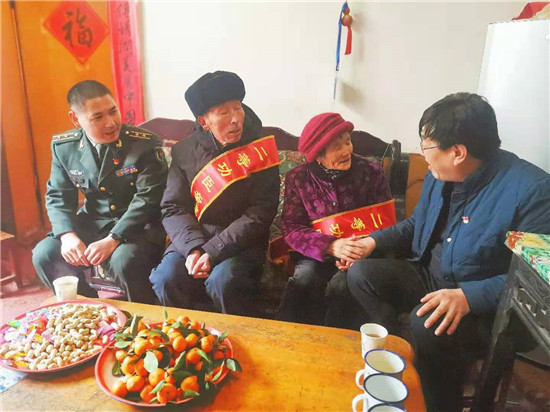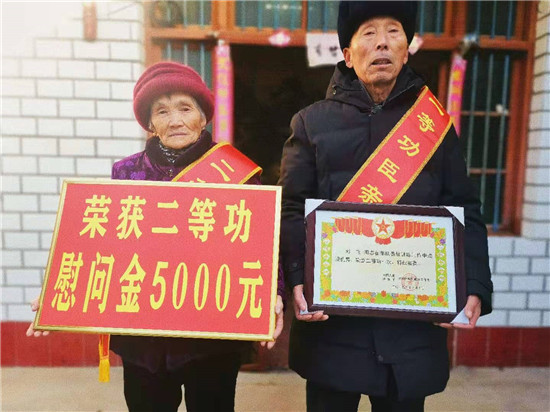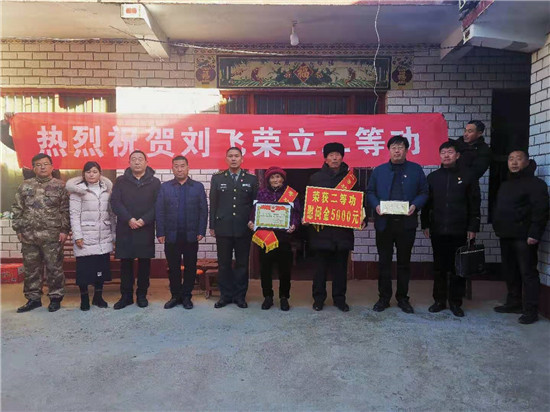 近日,周口市淮陽(yáng)區(qū)人武部與區(qū)退役軍人事務(wù)局相關(guān)領(lǐng)導(dǎo),來到該區(qū)四通鎮(zhèn)孔北行政村劉莊村,為在部隊(duì)榮立二等功的現(xiàn)役軍人劉飛的父母送去立功喜報(bào),并送上慰問品及慰問金。臨走,劉飛的父親劉啟來說:“請(qǐng)領(lǐng)導(dǎo)放心,俺會(huì)讓孩子在部隊(duì)更加安心服役,力爭(zhēng)取得更大成績(jī),多為家鄉(xiāng)增光添彩。”(張然 張雙斌 攝影報(bào)道)