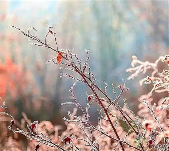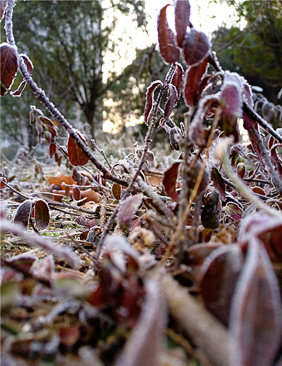 有詩(shī)云:“早寒青女至,零露結(jié)為霜。入夜飛清景,凌晨積素光?!?月6日,清晨時(shí)分,我市中心城區(qū)一層層雪白的霜花凝結(jié)在花草樹木等植物上,晶瑩剔透,令人驚艷,尤其在晨光的映照下,滿目的霜花就像一層銀光,把世界裝點(diǎn)得格外美麗。③2