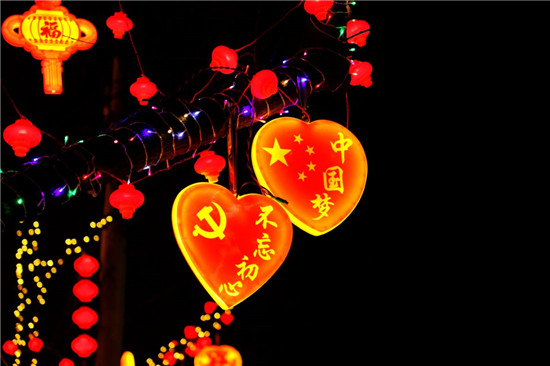 1月7日晚,扶溝縣城桐丘路,放眼望去,整條街道裝飾得色彩繽斕,形式各異的燈飾流光溢彩,美不勝收。景觀樹搖身一變,成了五彩繽紛的“星星樹”,一串串紅燈籠高高掛起,一顆顆“中國心”錯落有致,格外引人注目,引得路過的市民紛紛駐足拍照留念。