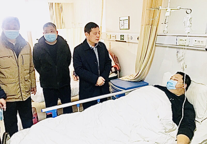 在醫(yī)院病房,陳鳳祥詳細了解朱樂樂的病情和治療情況,詢問其家庭情況和生活狀況,表達了公安局黨委非常重視民警、輔警身體健康情況的心情,并送上慰問金。同時,叮囑朱樂樂要保持樂觀心態(tài),安心養(yǎng)病,爭取早日康復,回到工作隊伍。
