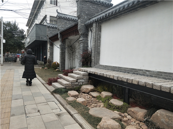 對(duì)面商鋪的張先生見(jiàn)證了這條小街的驚艷蝶變?!拔拿鞅甭肥抢辖?,之前這條街上的墻壁斑駁不已?!睆埾壬f(shuō),雖然街道極其干凈,但是覺(jué)得并不是很雅觀(guān)?,F(xiàn)在,綠植、竹林、亭臺(tái)取代了街道往日的蕭條沉寂,生態(tài)文化景觀(guān)一下子提振了小街的文化范,讓人覺(jué)得耳目一新。
