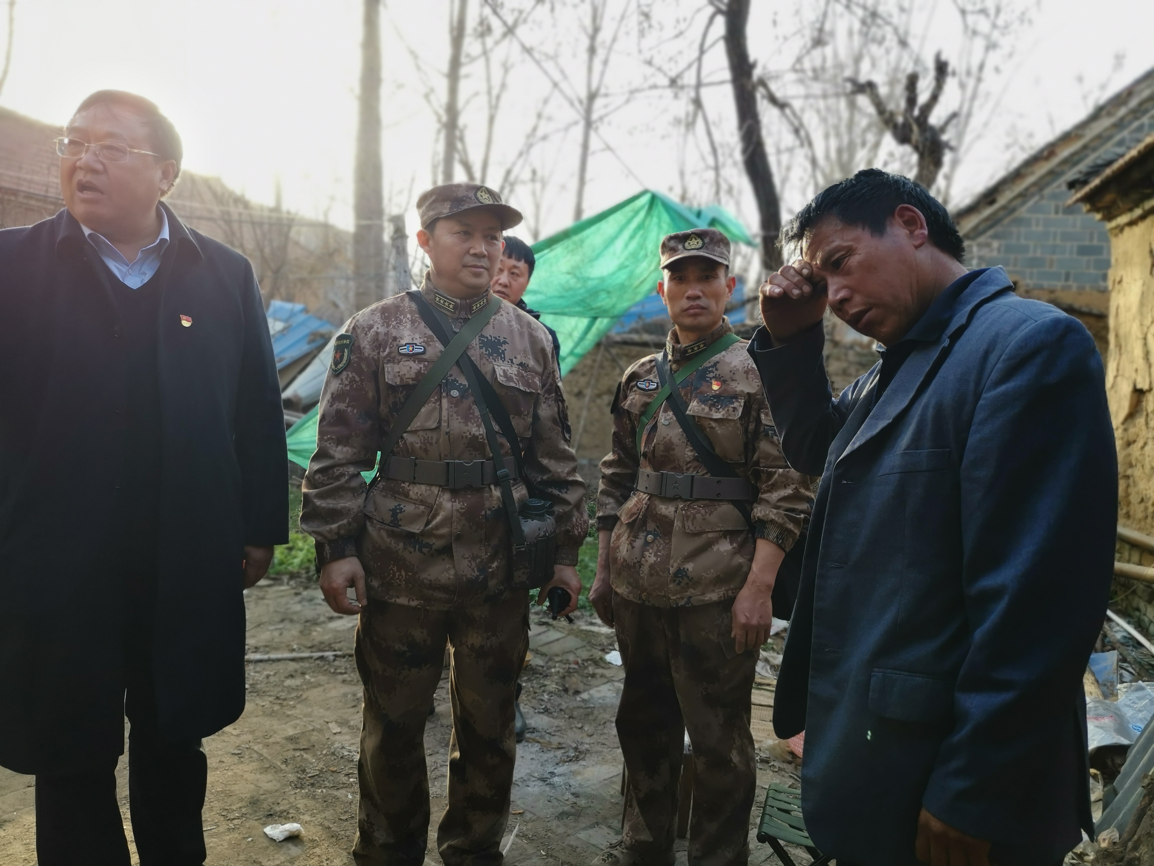 周口軍分區(qū)還將政治工作貫穿于野營(yíng)拉練全過(guò)程,當(dāng)行至周口港區(qū)苑寨行政村時(shí),薛振喜、周口軍分區(qū)政治工作處主任李揚(yáng)以及川匯區(qū)人武部部長(zhǎng)陳繼芳、政委高新傳等來(lái)到貧困戶苑立中家中慰問(wèn),為他們送去米面糧油等慰問(wèn)品??粗?jiǎn)陋的房屋,得知苑立中獨(dú)自一個(gè)人拉扯3個(gè)孩子的艱辛生活后,薛振喜囑咐當(dāng)?shù)卣臀溲b部門(mén)要想辦法幫扶這戶貧困家庭。 苑立中激動(dòng)地流下眼淚,握著薛振喜的手連聲感謝。