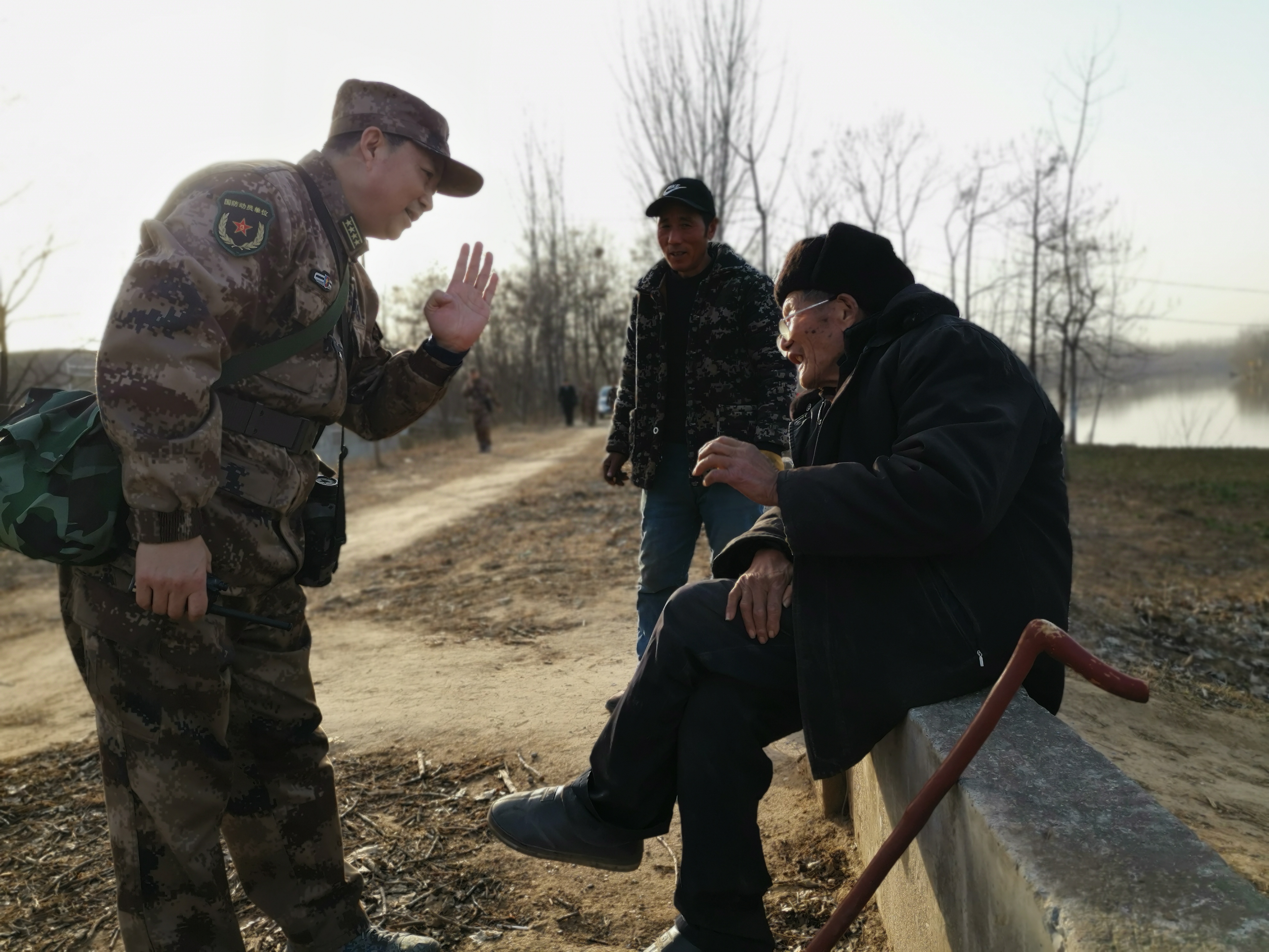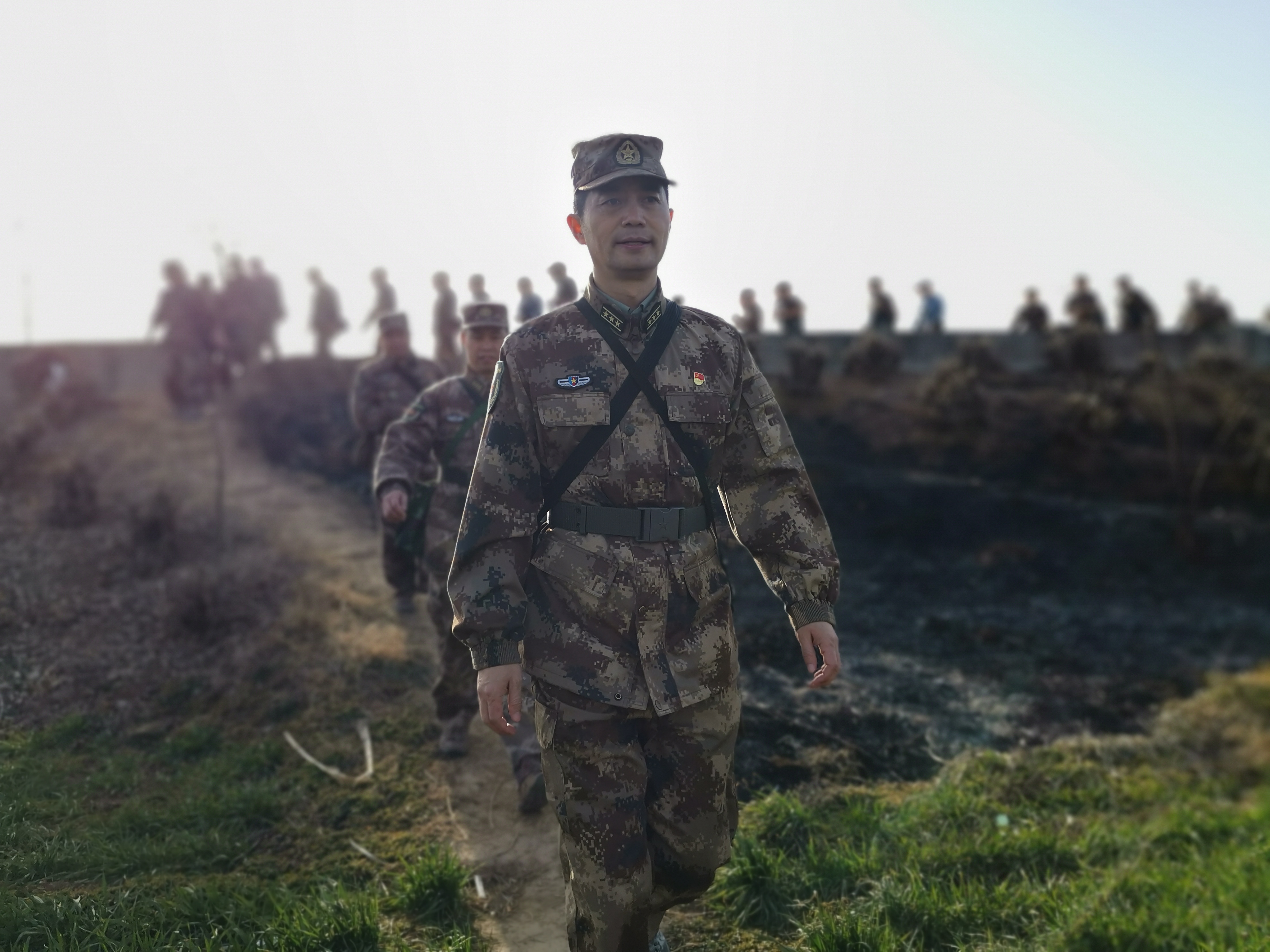 冬日暖陽(yáng)里,沙潁河畔,一群迷彩身影行走在蜿蜒曲折的沙河堤上。陽(yáng)光下,“河南省周口軍分區(qū)”的旗幟迎風(fēng)飄揚(yáng)。