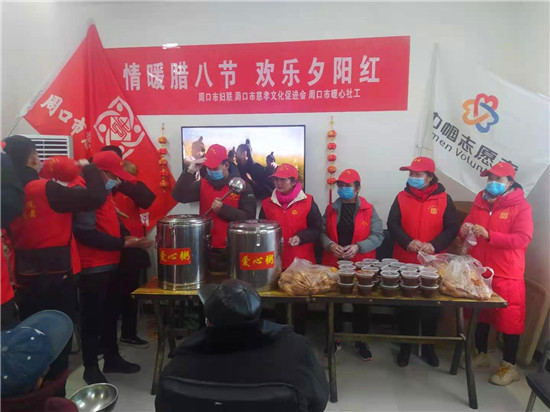 1月20日是臘八節(jié),市婦聯(lián)、市慈孝文化促進(jìn)會的志愿者來到城鄉(xiāng)一體化示范區(qū)搬口辦事處敬老院開展“歡樂臘八節(jié),情暖夕陽紅”敬老慰問活動(dòng)。志愿者把親手熬制的八寶粥送到老人手中,給老人送去溫暖。