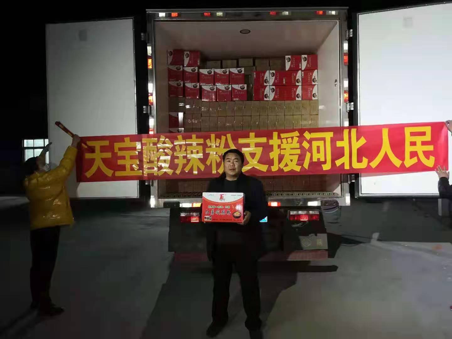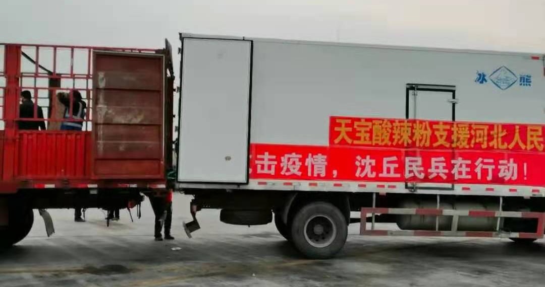 于是,他當(dāng)即與河北省南宮市相關(guān)防疫部門取得聯(lián)系,天宮那邊欣然接受,并表示感謝。1月20日當(dāng)夜,便組織召集村上的“鐵桿工人”連夜加班加點(diǎn)生產(chǎn)了價(jià)值5萬元共計(jì)1萬盒“天寶酸辣粉”,無償捐贈(zèng)給河北天宮市,送去來自沈丘縣中豫天寶食品有限公司的一片愛心。