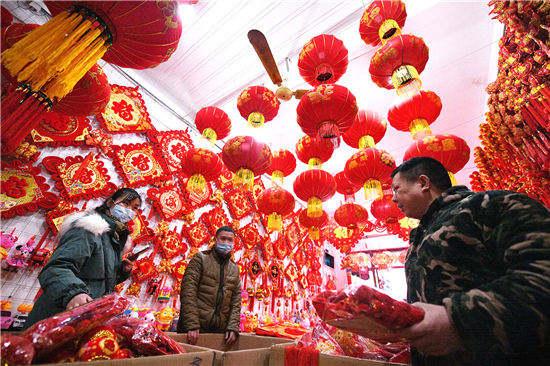 今年,年貨市場的燈籠、春聯(lián)品種豐富,印刷工藝日益提升,春聯(lián)品種多而全,燈籠市場更是琳瑯滿目,制作非常講究。③2