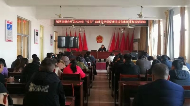 在春節(jié)、元宵節(jié)即將來(lái)臨之際,川匯區(qū)城南街道辦事處開(kāi)展2021年“雙節(jié)”前廉政黨課暨廉潔過(guò)節(jié)集體談話活動(dòng),要求黨員干部增強(qiáng)廉潔自律意識(shí)、筑牢思想防線,確保過(guò)一個(gè)風(fēng)清氣正的“雙節(jié)”。