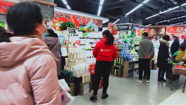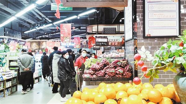 春節(jié)日益臨近,我市中心城區(qū)的各大超市充滿了濃濃的年味兒。1月26日,記者走進(jìn)一家超市看到,各類商品擺滿了貨架,糧油、糖品、干貨、生鮮、熟食、水果等品種豐富,一應(yīng)俱全,過(guò)年的氛圍十分濃厚。