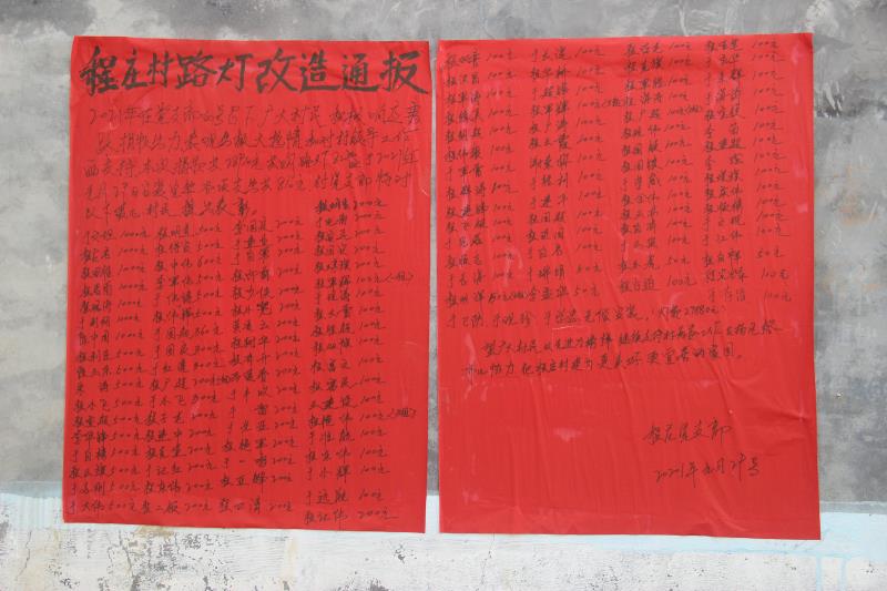 2021年2月3日,周口市商水縣郝崗鎮(zhèn)程莊村的一面墻上的紅紙黑字大字報(bào)吸引了記者的注意,上面密密麻麻地寫(xiě)著愛(ài)心村民的姓名和捐款金額,經(jīng)走訪(fǎng)村干部得知實(shí)情。