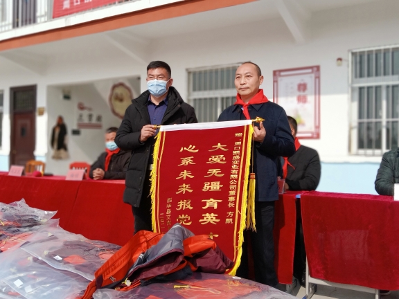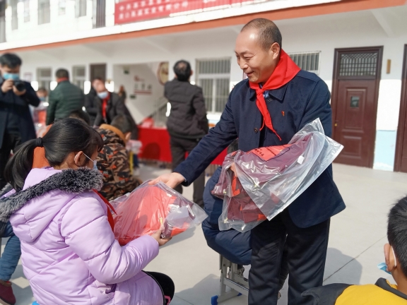 春節(jié)臨近,方凱自掏腰包6萬余元,購買164套新校服捐贈給西華縣艾崗鄉(xiāng)半截樓小學(xué),一如既往地將大愛播撒與傳遞。說起方凱的愛心行動,那是不勝枚舉。方凱10余年來堅(jiān)持幫貧濟(jì)困,每年都采取不同的方式,為貧困戶、貧困大學(xué)生、環(huán)衛(wèi)工、留守兒童、敬老院、貧困學(xué)校、福利中心智障孩子和災(zāi)區(qū)等進(jìn)行愛心捐助,已經(jīng)累計(jì)捐款捐物達(dá)1600多萬元。為了表達(dá)對方凱的謝意,西華縣艾崗鄉(xiāng)半截樓小學(xué)向方凱贈送了“大愛無疆育英才,心系未來報(bào)黨恩”的錦旗,同時,還鄭重聘請方凱為該校名譽(yù)校長。