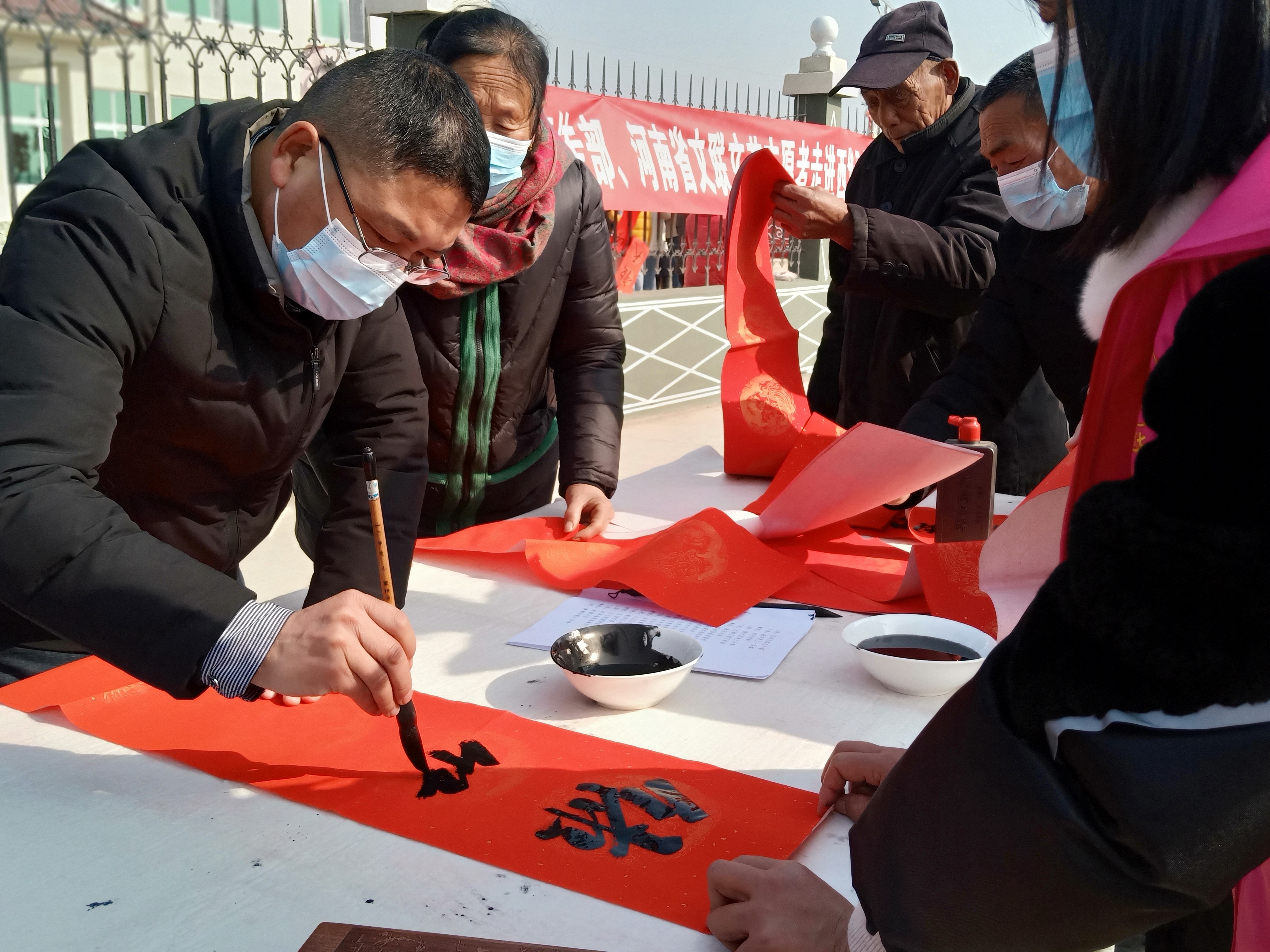 一大早,半截樓村新時(shí)代黨群服務(wù)中心樓前大院里人頭攢動(dòng)、歡聲笑語(yǔ)、翰墨飄香。一邊是省文聯(lián)志愿者義寫春聯(lián)送福,一邊是文藝志愿者文藝培訓(xùn)。村民們喜領(lǐng)一副副散發(fā)著墨香的大紅春聯(lián),臉上洋溢著幸福喜悅的笑容。