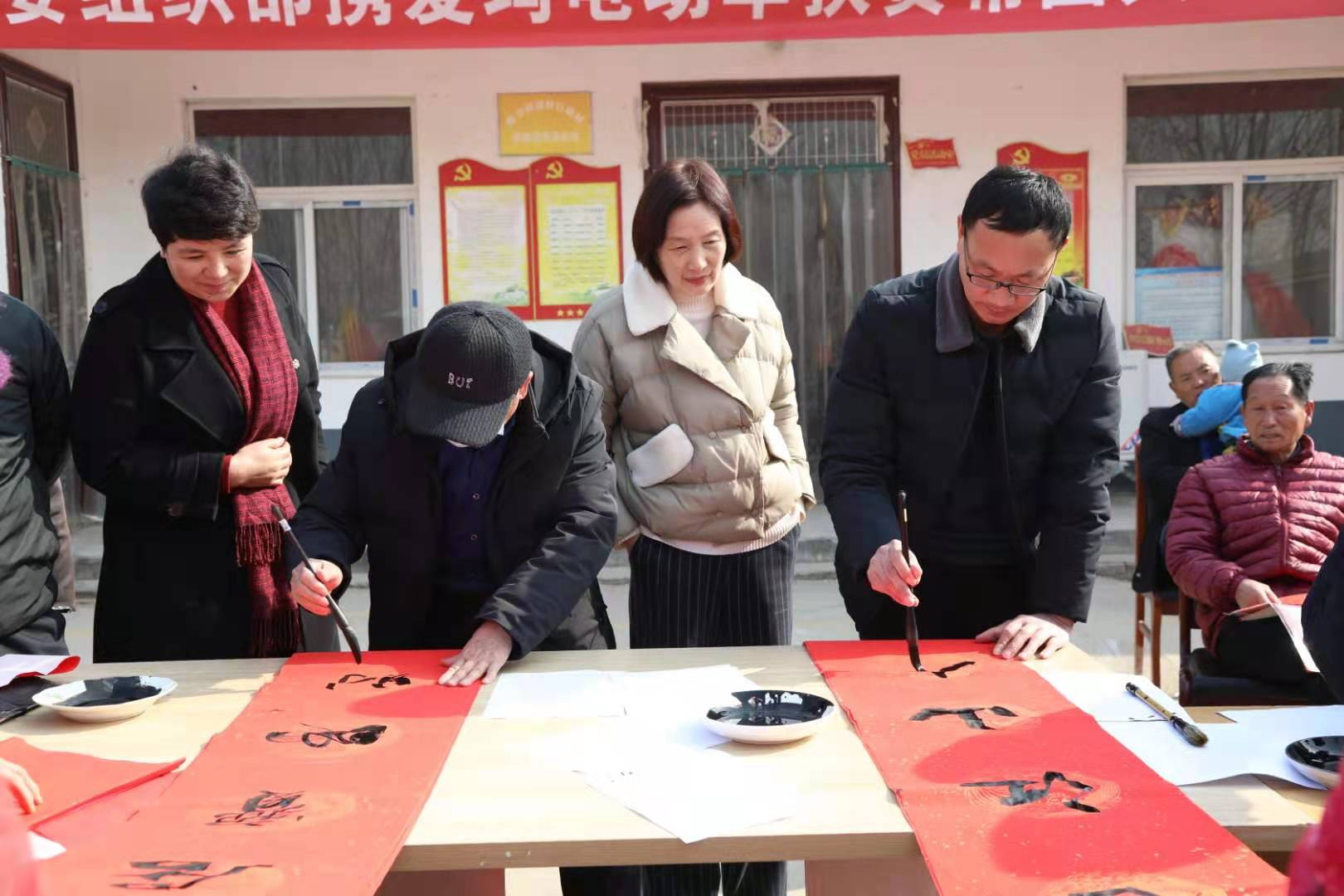 2月4日,扶溝縣委組織部聯(lián)合愛(ài)瑪電動(dòng)車扶溝專賣店、張坡詩(shī)詞名人書(shū)畫(huà)館到駐村幫扶村——練寺鎮(zhèn)劉村行政村舉行扶貧幫困義寫(xiě)春聯(lián)頌黨恩暨扶貧濟(jì)困慰問(wèn)活動(dòng)。聽(tīng)說(shuō)書(shū)法家到村里來(lái)寫(xiě)春聯(lián),群眾一大早就排起了長(zhǎng)隊(duì),紛紛前來(lái)感受傳統(tǒng)文化的魅力和濃濃的年味。