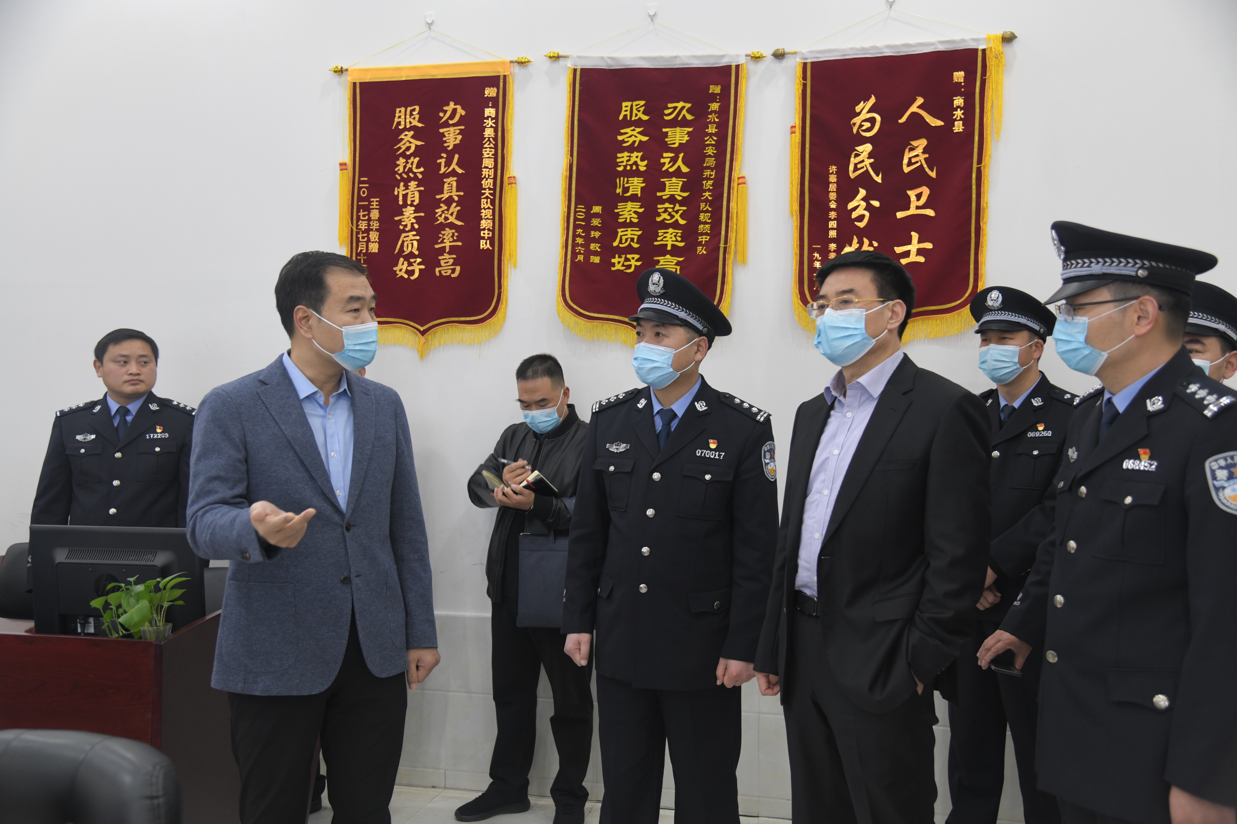 在縣公安局,孔陽、田林與備勤人員一一握手,親切交談??钻栆恍羞€到公安局110指揮中心和合成作戰(zhàn)中心,看望值班人員,對縣公安局新黨委班子成立以來取得的成績給予充分肯定。他指出,越是在萬家團圓的時候,維護社會穩(wěn)定的任務(wù)就越重,希望堅守在一線的工作人員繼續(xù)發(fā)揚良好的作風(fēng),堅守崗位,確保全縣人民過一個平安祥和安全的春節(jié)。
