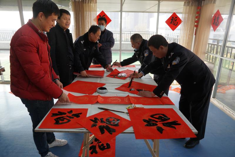 金牛賀歲來祥瑞,翰墨飄香迎新春。為弘揚中華傳統文化,落實“從優(yōu)待警”舉措,傳遞市局黨委的親切慰問和關心關懷,豐富警營文化生活,營造歡樂祥和的節(jié)日氛圍,2月9日,項城市公安局在三樓大廳開展書贈春聯活動,孫沄、閆永紅等5名警營書法家及16名蓮溪書院師生揮毫潑墨,現場為民警、輔警及工作人員義寫春聯、福字2000余套,受到了廣大民警、輔警的熱烈歡迎和充分好評。