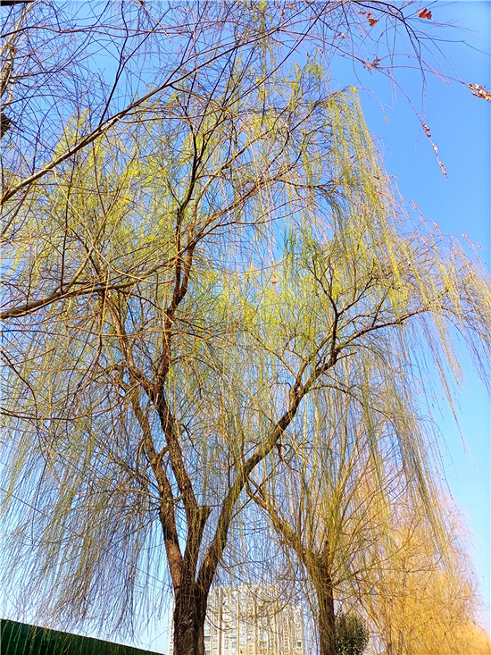 道路旁的垂柳吐綠