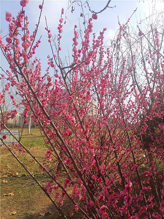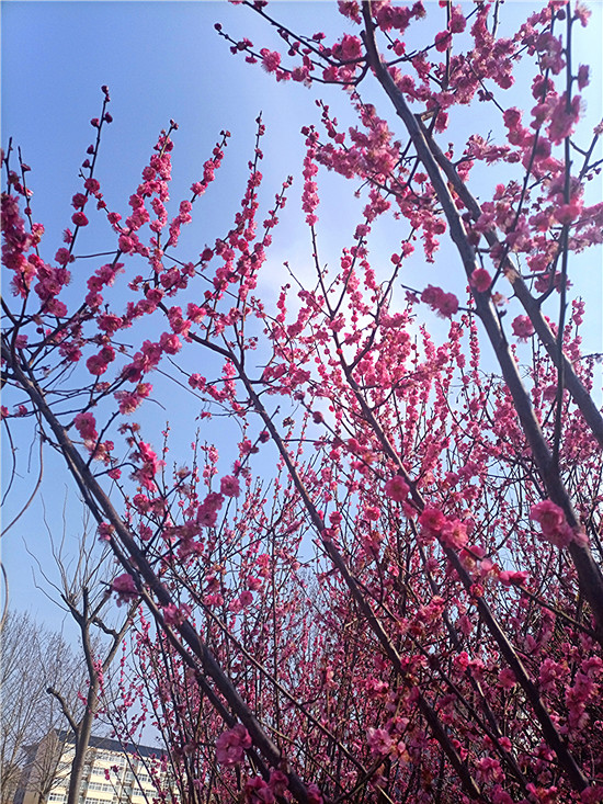 梅花,自古以來就是文人墨客筆下的???。有詩云:“春風(fēng)試手先梅蕊,頩姿冷艷明沙水?!泵坊軌蛄韬㈤_,兼具冷艷和嬌媚,被譽為花中四君子之首。近日,我市天氣晴好,公園內(nèi)、道路旁,一樹樹梅花開的熱熱鬧鬧、密密匝匝,令人感受到濃濃的春意和無盡的美好。