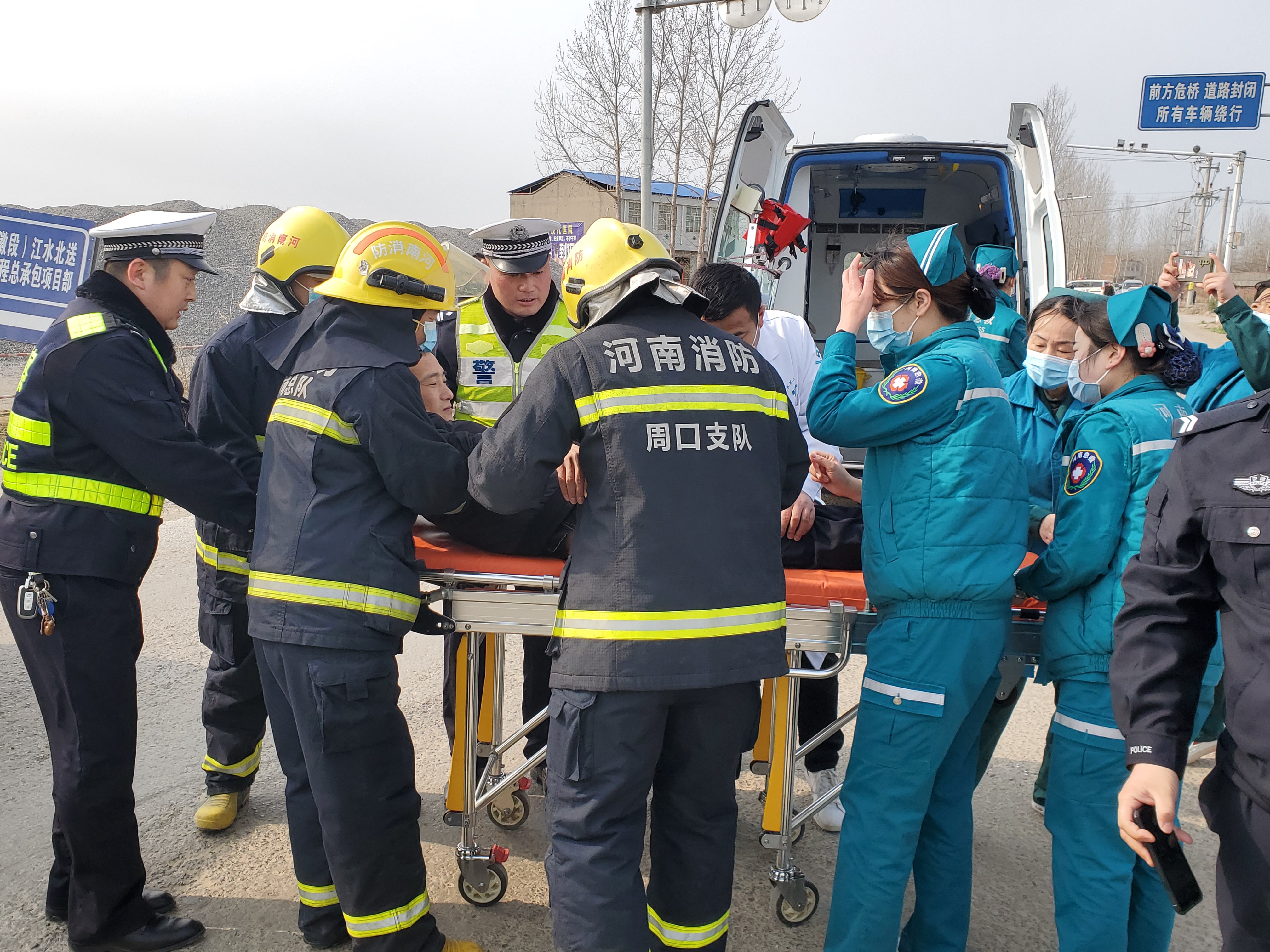 為提高冬季惡劣天氣條件下突發(fā)道路交通事故應(yīng)急處置能力、各部門之間的協(xié)同作戰(zhàn)以及應(yīng)急指揮系統(tǒng)的組織協(xié)調(diào)能力,最大限度減少因交通事故導(dǎo)致的人員傷亡,確保人民群眾生命財(cái)產(chǎn)安全,鄲城縣公安交通警察大隊(duì)聯(lián)合淮陽區(qū)公安交通警察大隊(duì)和安徽省亳州市公安交通警察支隊(duì)四大隊(duì)雙溝中隊(duì),及鄲城縣公安局南豐鎮(zhèn)派出所,應(yīng)急管理、鄲城縣麗清醫(yī)院,鄲城縣中心醫(yī)院,道路基金救助辦公室等部門開展了道路交通事故快速發(fā)現(xiàn)、及時(shí)救援、有效救治、妥善救助的“四位一體”聯(lián)動(dòng)型應(yīng)急處置演練活動(dòng)。
