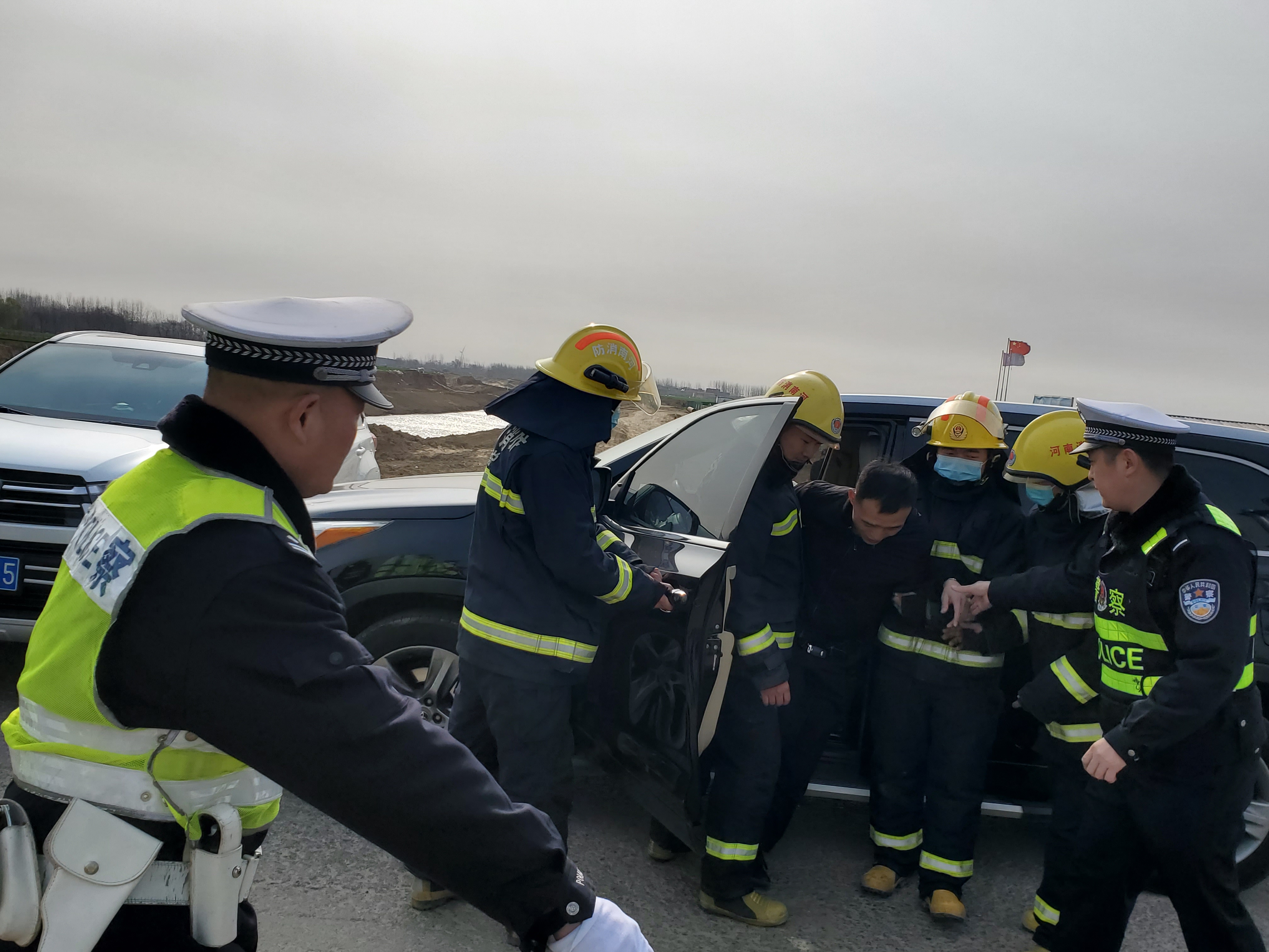 演練模擬2月23日10許,在G220國道河南安徽二省交界友誼橋處,二輛越野車在道路中心線處相撞,二輛車駕駛?cè)祟^部受傷流血,車門被卡,車輛起火冒煙道路嚴(yán)重?fù)矶?、情況危急。接到報(bào)警后,交警部門立即向上級(jí)進(jìn)行匯報(bào),“四位一體”聯(lián)動(dòng)工作機(jī)制隨即啟動(dòng),相關(guān)部門迅速趕往現(xiàn)場開展事故處置和救援工作。同時(shí)會(huì)同交警、屬地派出所,消防救援、醫(yī)療救護(hù)部門一起協(xié)助開展相關(guān)工作。隨后事故民警按照現(xiàn)場勘查要求,迅速對(duì)現(xiàn)場進(jìn)行勘查、拍照,提取相關(guān)證據(jù),配合搶險(xiǎn)、醫(yī)療施救各部門,并對(duì)現(xiàn)場遺留物品進(jìn)行清理、登記并妥善保管。勘查結(jié)束后交警部門解除警戒區(qū),將車輛疏導(dǎo)、分流完畢后撤離現(xiàn)場。