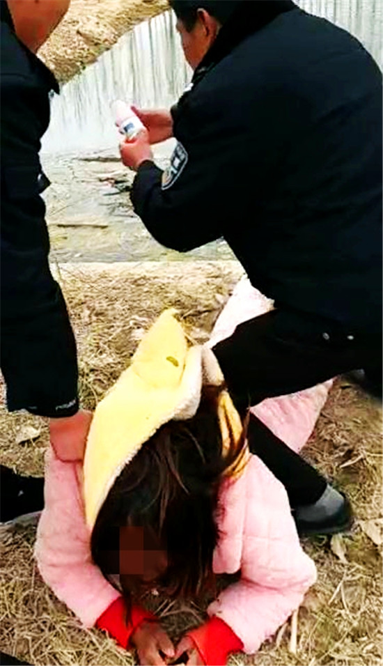 同一時(shí)間,該女子的家人也趕到。他們相互配合,民警將這名輕生女從河邊拉出,奪下手中的藥瓶子。