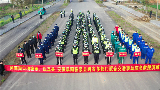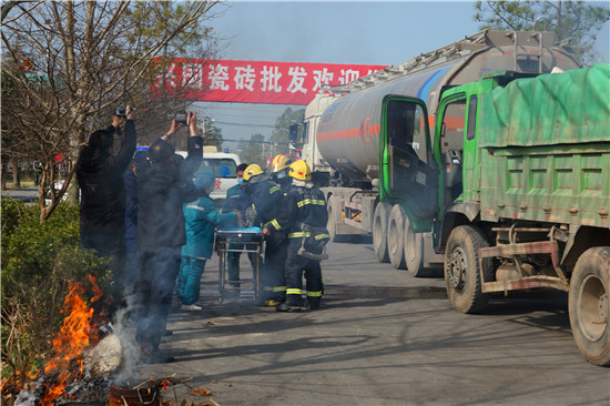 為進(jìn)一步健全完善涉及危險(xiǎn)品運(yùn)輸車事故應(yīng)急處置和搶險(xiǎn)救援機(jī)制,加強(qiáng)省際國(guó)省道安全管控,提高突發(fā)事件應(yīng)急處置和救援能力,經(jīng)共同研究決定,3月3日上午,河南省公安廳交警總隊(duì)組織周口市公安局交通管理支隊(duì)和安徽阜陽(yáng)市公安局交通管理支隊(duì)聯(lián)合兩地交警、環(huán)保、消防、施救、120急救中心等多部門在兩市交界處舉行道路交通事故應(yīng)急救援聯(lián)合演練,演練內(nèi)容包括接處警、交通管制、環(huán)境監(jiān)測(cè)、營(yíng)救被困人員、處置?;?、事故現(xiàn)場(chǎng)勘察、事故現(xiàn)場(chǎng)清理等內(nèi)容。