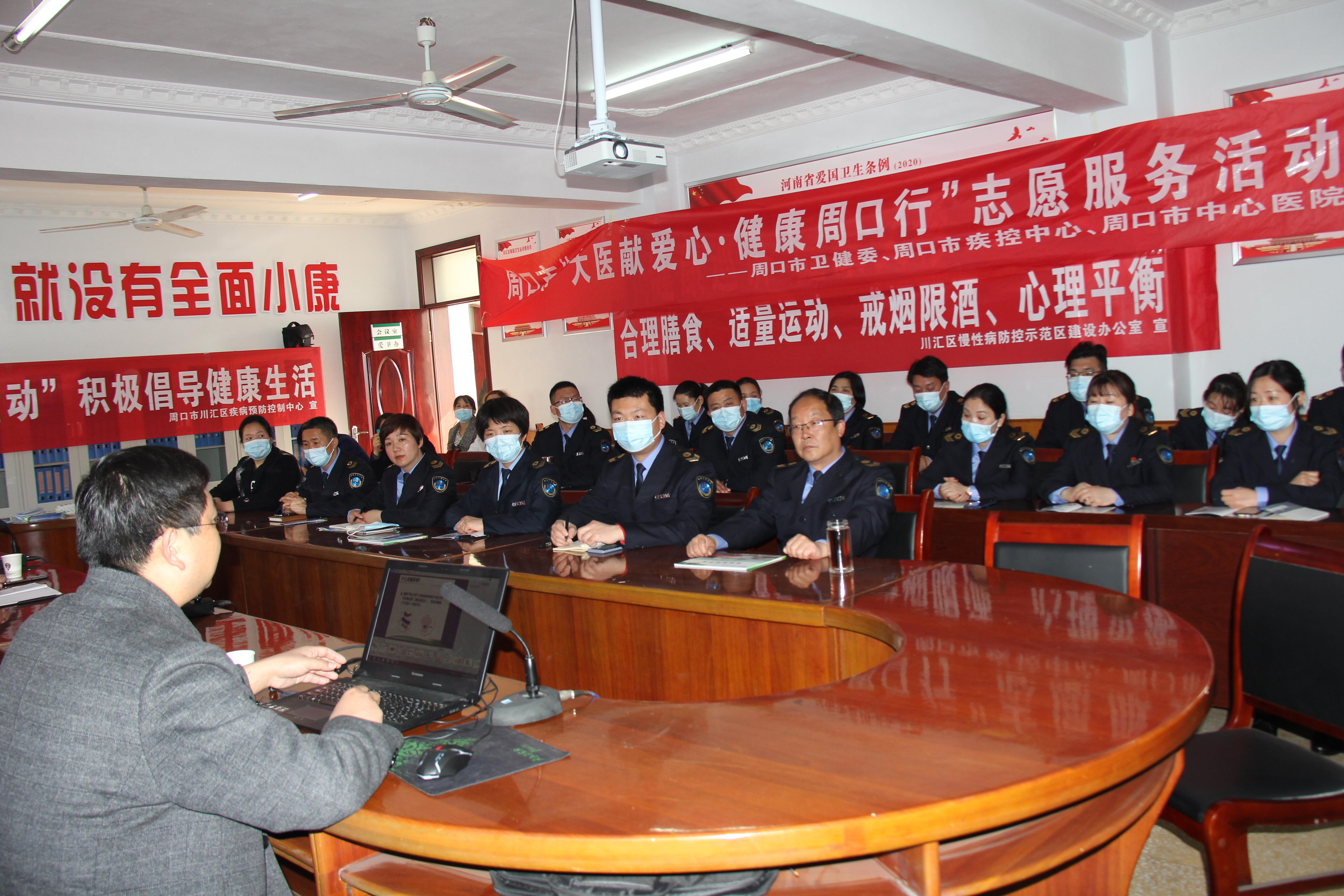 為深入開(kāi)展“河南省新時(shí)代文明實(shí)踐推動(dòng)周”活動(dòng),3月4日下午,由川匯區(qū)衛(wèi)健委組織,市健康教育所、市中心醫(yī)院、區(qū)健康教育所、區(qū)疾病預(yù)防控制中心、區(qū)慢性病防控示范區(qū)建設(shè)辦公室、人和社區(qū)衛(wèi)生服務(wù)中心等單位承辦的“新時(shí)代文明實(shí)踐推動(dòng)周”“健康周口行 大醫(yī)獻(xiàn)愛(ài)心”健康科普活動(dòng)走進(jìn)川匯區(qū)衛(wèi)生計(jì)生監(jiān)督所。講座邀請(qǐng)周口市中心醫(yī)院內(nèi)分泌專家楊東輝為川匯區(qū)衛(wèi)生計(jì)生監(jiān)督所干部職工送上“糖尿病如何科學(xué)防治”健康科普知識(shí)講座。