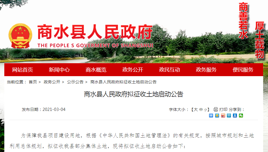 商水縣人民政府?dāng)M征收土地啟動公告