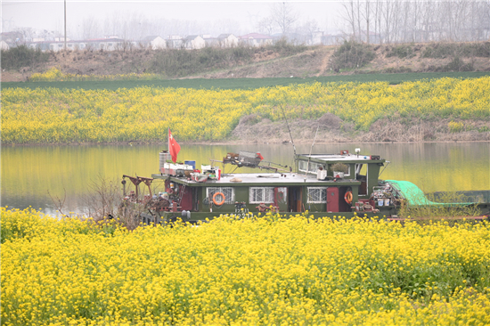 近日,盡管天氣乍暖還寒,沙潁河周口上游段油菜花已競(jìng)相開(kāi)放。蜿蜒碧水兩畔,金黃色的油菜花燦如錦緞。輪渡行進(jìn)在碧水和花錦之間,如走進(jìn)畫(huà)廊。②8