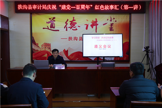 “遵義會議結(jié)束了王明左傾機會主義路線在黨中央的統(tǒng)治(4年),確立了以毛澤東為代表的新的中央正確領(lǐng)導(dǎo)。在中國革命的危急關(guān)頭,挽救了黨,挽救了紅軍,挽救了中國革命,是我黨歷史上一個生死攸關(guān)的轉(zhuǎn)折點?!?月15日,扶溝縣審計局黨史學(xué)習(xí)教育“紅色故事匯”開講了,局長翟連生主講,局機關(guān)全體黨員干部參加了學(xué)習(xí)。