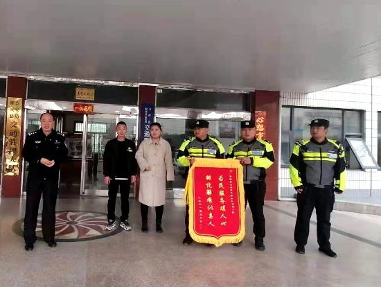 3月16日上午8時,鄲城縣新城區(qū)響盤莊行政村張柿園村村民張小濤夫妻倆,將一面寫有“為民服務暖人心,排憂解難似親人”字樣的錦旗送到了鄲城縣交警大隊,感謝交警大隊鐵騎中隊護送他們迷路的孩子回家。