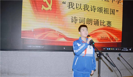 “我是你掛著眼淚的笑渦/我是新刷出的雪白的起跑線/是緋紅的黎明/正在噴薄/——祖國(guó)啊!”一句句飽含深情的朗誦,一陣陣熱情如潮的掌聲。3月20日下午,鄲城縣第二實(shí)驗(yàn)中學(xué)“我以我詩(shī)頌祖國(guó)”學(xué)生愛(ài)國(guó)詩(shī)詞朗誦比賽熱烈舉行。