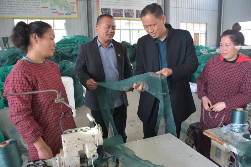 3月27日,商水縣平店鄉(xiāng)李崗村“商水縣龍巢網(wǎng)業(yè)公司”經(jīng)理羅國(guó)昌向村黨支部書記李金棋(左二)介紹漁網(wǎng)編織產(chǎn)業(yè)產(chǎn)銷帶貧情況。羅國(guó)昌和妻子劉清華2009年創(chuàng)辦漁網(wǎng)編織加工廠、2017年擴(kuò)建新區(qū),現(xiàn)有3個(gè)大型生產(chǎn)車間庫房,發(fā)展30多個(gè)分廠、40多個(gè)聯(lián)系點(diǎn),年產(chǎn)各種成品漁網(wǎng)500萬條,產(chǎn)品銷往國(guó)內(nèi)江蘇、安微、山東、河北、湖北等10多個(gè)省區(qū)和30多個(gè)沿??h市水產(chǎn)公司,部分出口到俄羅斯及東南亞地區(qū),年創(chuàng)產(chǎn)值約1.6億元,精準(zhǔn)幫扶225戶群眾脫貧,帶貧群眾有1萬余人。