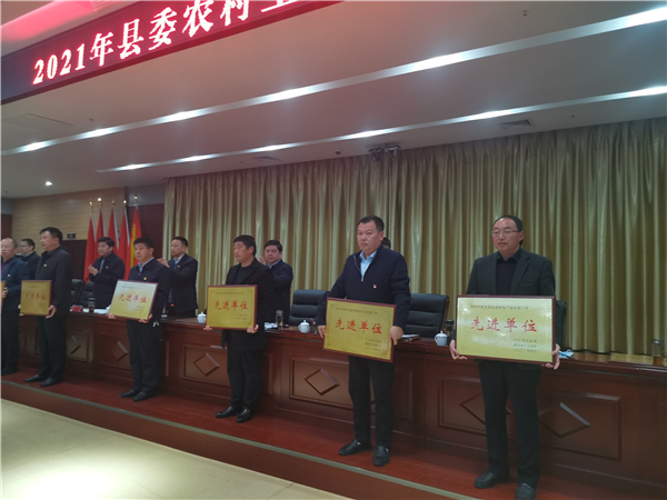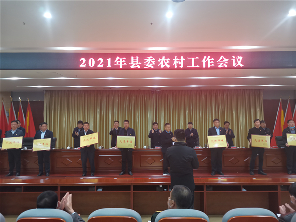 郭俊濤就貫徹落實(shí)會(huì)議精神及下一步農(nóng)村工作進(jìn)行具體安排部署??h委副書記許四軍宣讀了縣委、縣政府關(guān)于表?yè)P(yáng)2020年度農(nóng)業(yè)農(nóng)村工作先進(jìn)單位、先進(jìn)個(gè)人的通報(bào)。會(huì)議還對(duì)受表彰的先進(jìn)單位代表進(jìn)行了頒獎(jiǎng)。