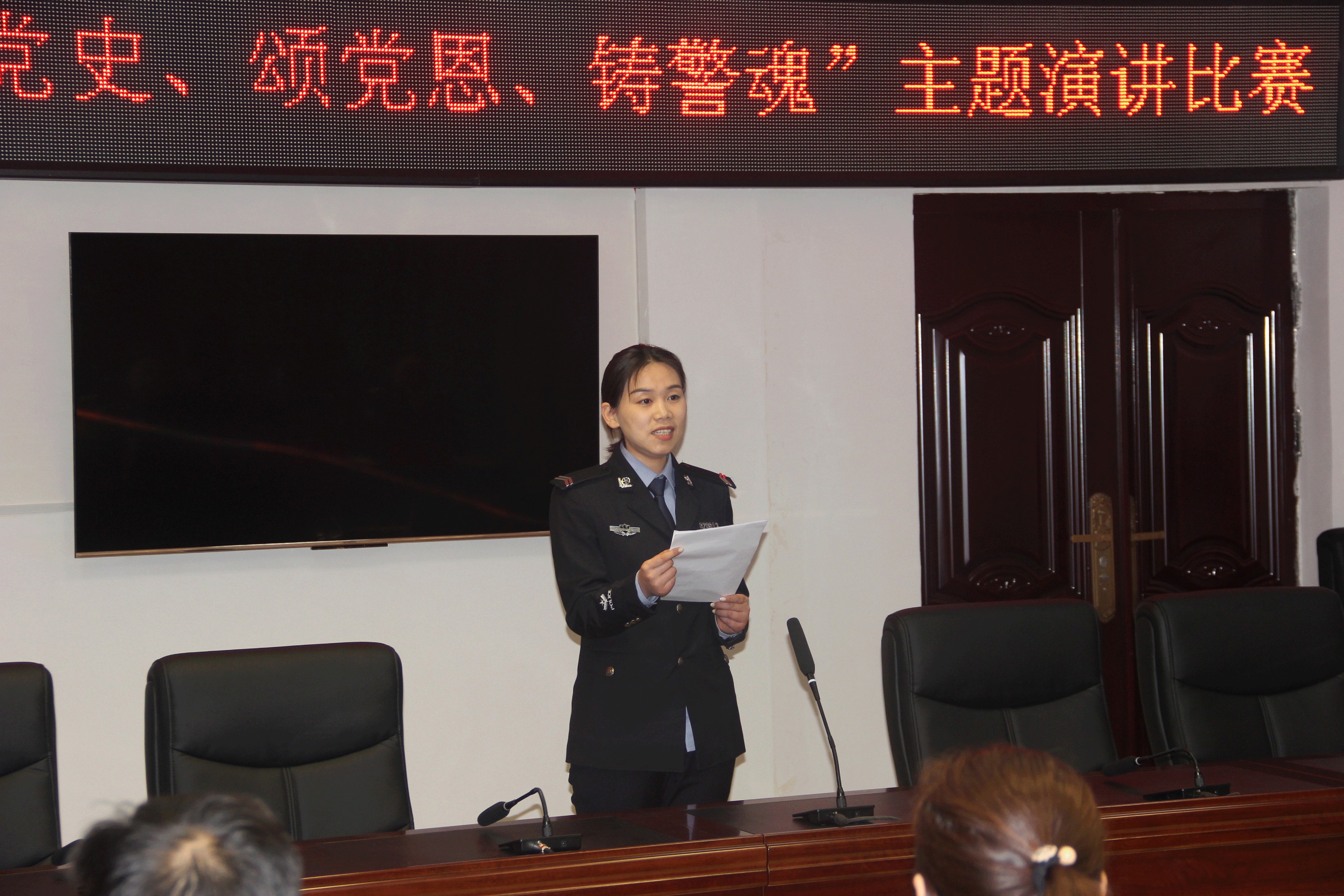 參賽評委從演講內(nèi)容、語言表達(dá)、形象氣質(zhì)等綜合評分,最終評選出演講比賽一、二、三等獎,分局政委岳備戰(zhàn)和副局長田貽林分別為獲獎選手進(jìn)行頒獎。