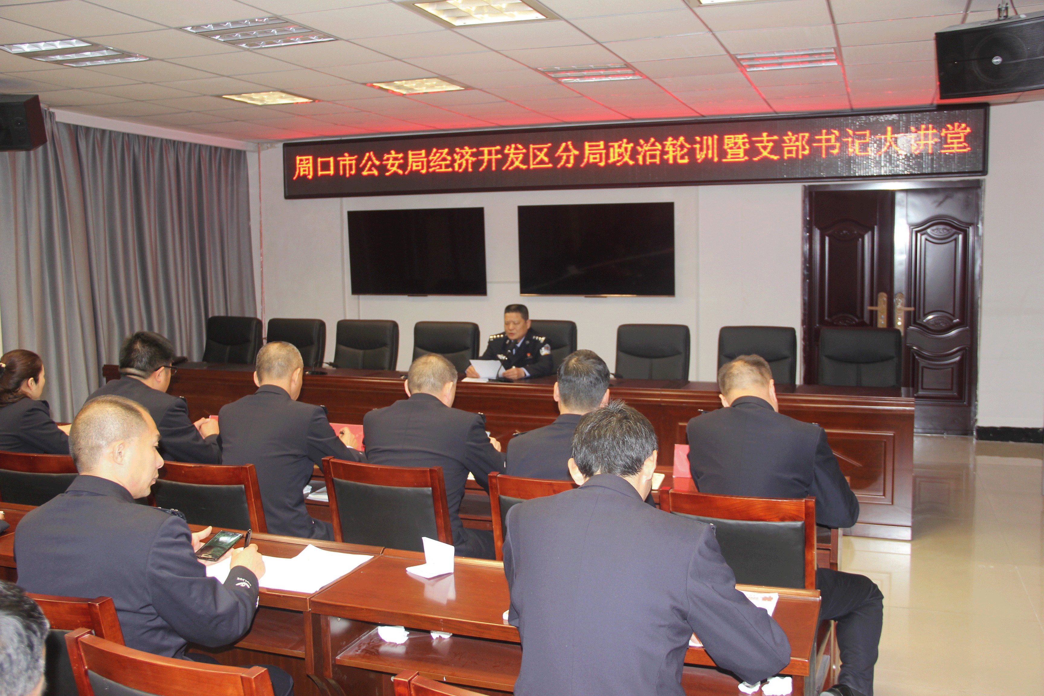 3月29日晚,開(kāi)發(fā)區(qū)分局舉辦第一期政治輪訓(xùn)暨支部書(shū)記大講堂,分局黨委副書(shū)記、政委岳備戰(zhàn),黨委副書(shū)記、副局長(zhǎng)田貽林及局黨委班子成員、各單位負(fù)責(zé)人、副科級(jí)以上民警和各支部書(shū)記參加了活動(dòng)。