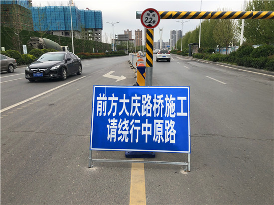 在大慶路橋南、北兩個上橋口,已安裝了高為2.2米的限高桿,施工路段的東側(cè)修有4個車道的便道,各車道中間設(shè)有臨時護欄,低于2.2米的車輛可以通行。值得提醒的是,該路段早、晚高峰期時較為擁堵,希望市民提前繞行(可繞行至中原路、八一大道)。